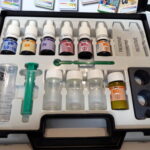 Seitens der Anwendung sind diese Tests alle gleich. Wasser wird mit der beiliegenden Spritze, nach Anleitung, in die Fläschchen (Reaktionsbehälter) gegeben, dann die entsprechende Anzahl Tropfen vom Reagenz dazu, kurz Schütteln, die angegebene Reaktionszeit abwarten und anschließend die Farbe mit der Farbskala vergleichen.